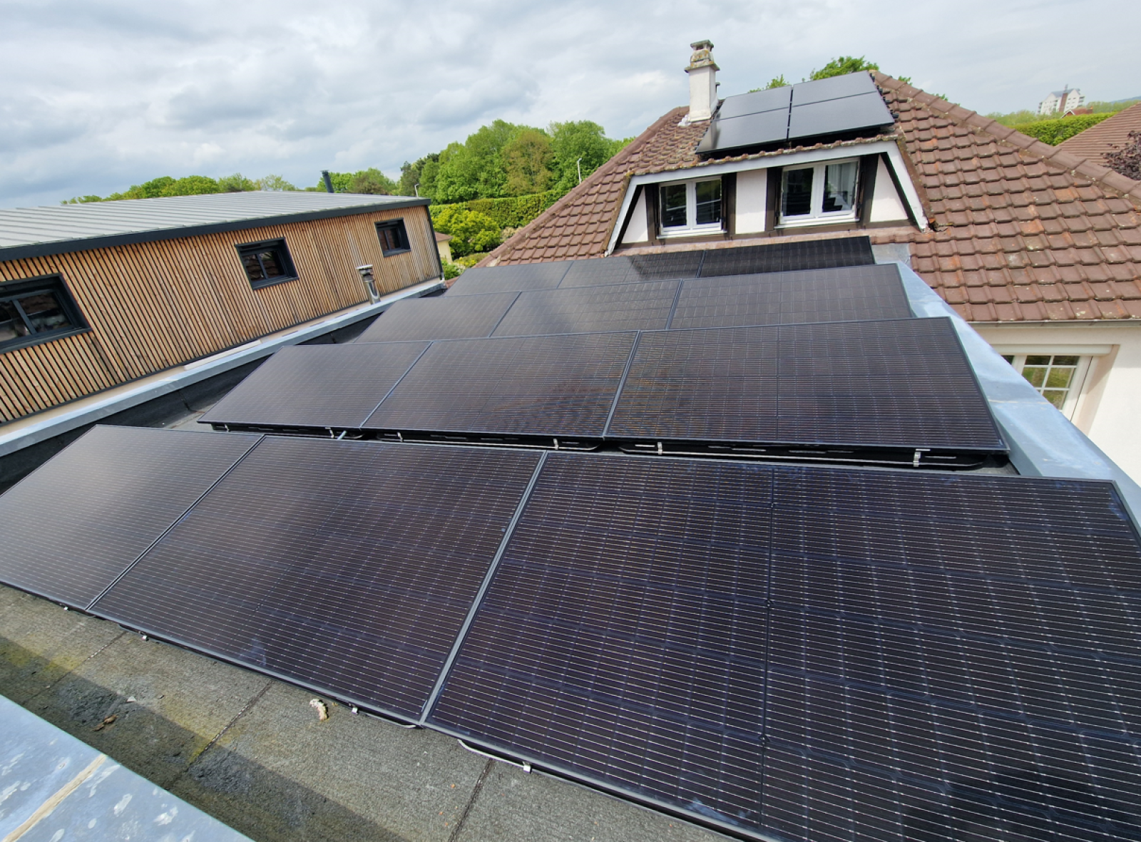 Cette centrale photovoltaïque se distingue par sa polyvalence. Douze panneaux ont été stratégiquement positionnés sur des bacs à lester, parfaitement adaptés aux toits plats. Ces panneaux sont dédiés à l'autoconsommation, permettant à nos clients de maximiser l'utilisation de l'énergie solaire pour répondre à leurs besoins énergétiques quotidiens.